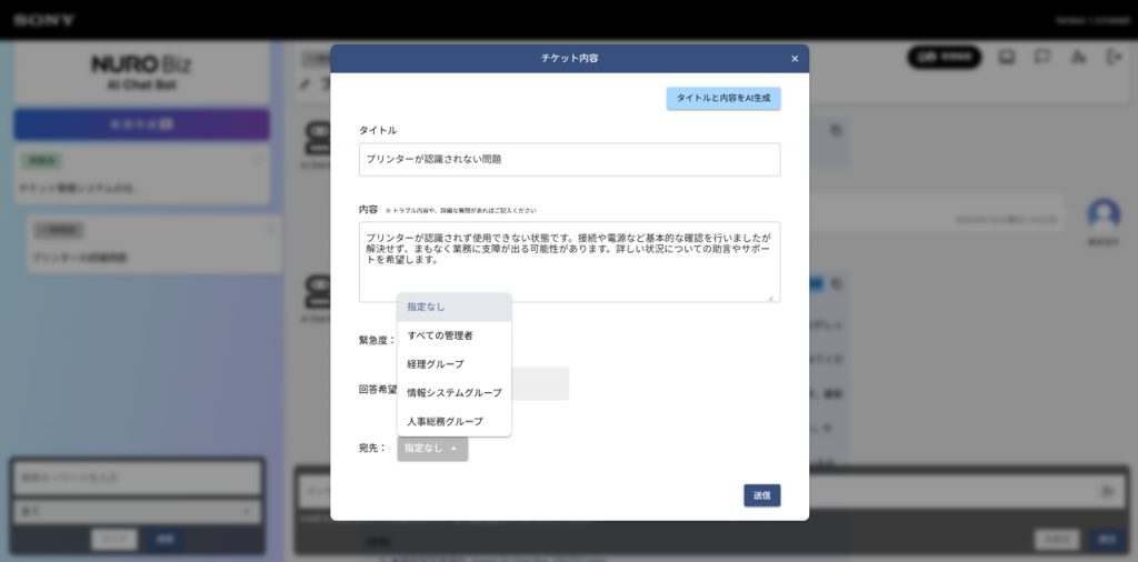 「Assist AI Chat Bot」は法人向けICTソリューションブランド『NURO Biz(ニューロ・ビズ)』のサービスで、情報システム部門(以下、情シス)のバックオフィス部門に寄せられる従業員からの社内問い合せに対して、窓口担当者に代わってAIが対話形式で解決をサポートします。